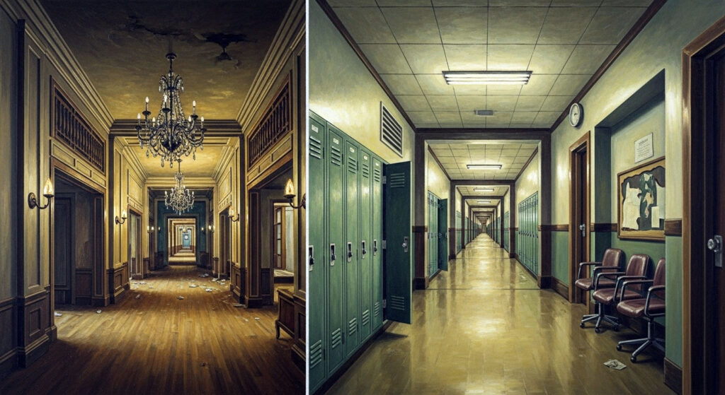 Backroomsが注目される理由のひとつは、「誰もが一度は見たことのあるような空間」であることです。